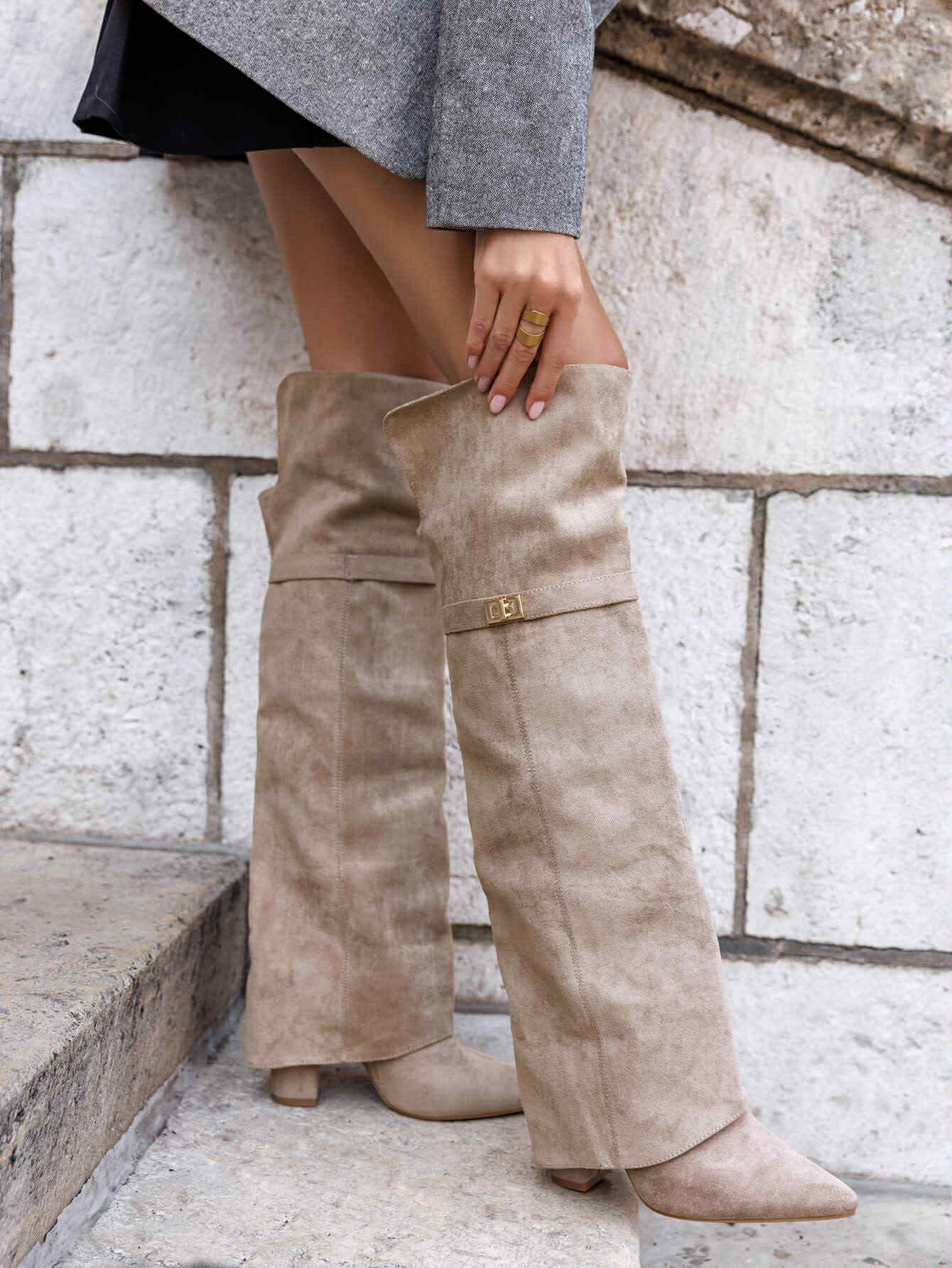 Beige boots golden details.
