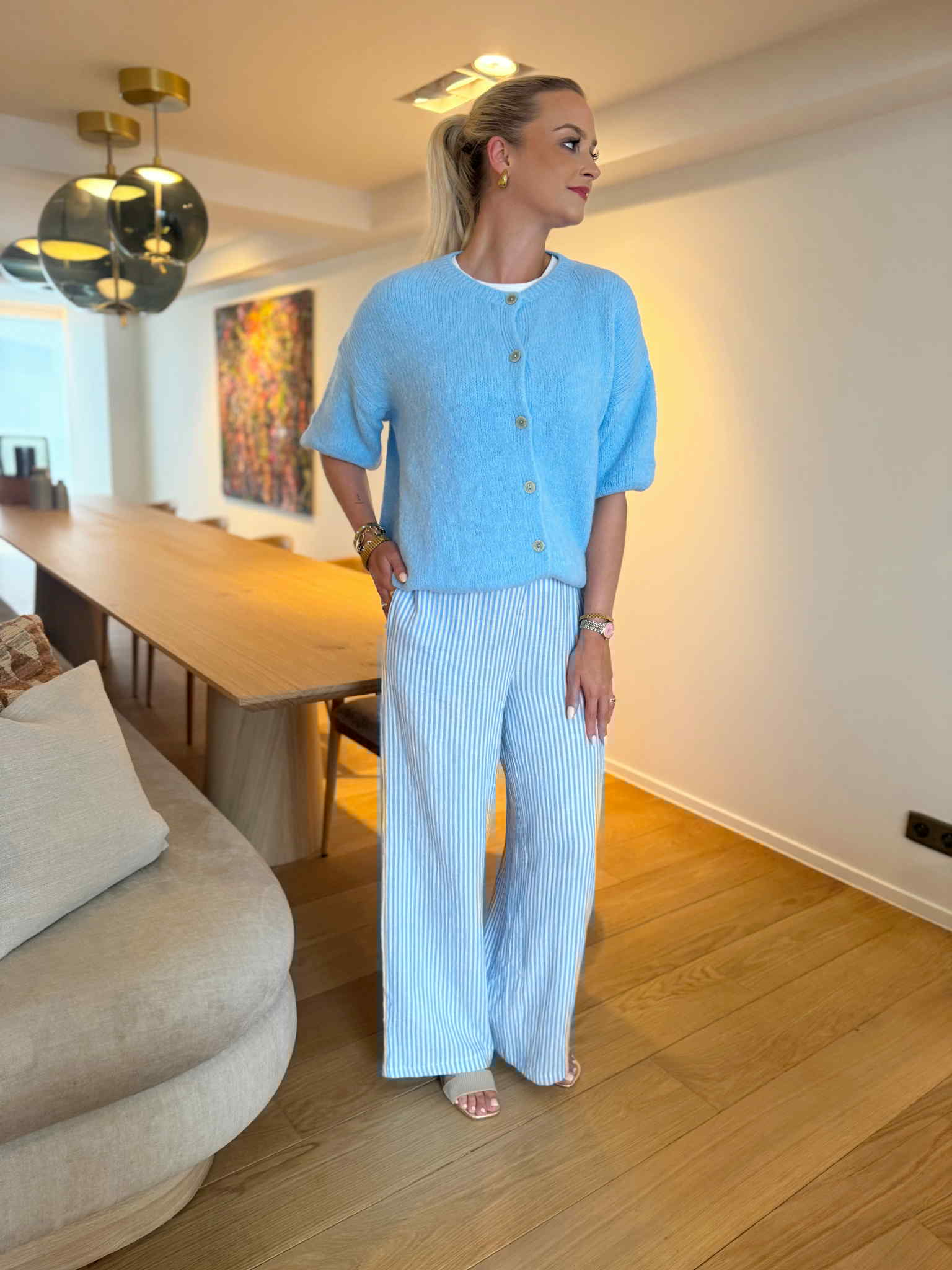– Ronde hals. – Los vallend. – In verschillende kleuren. – Met knoopjes.
