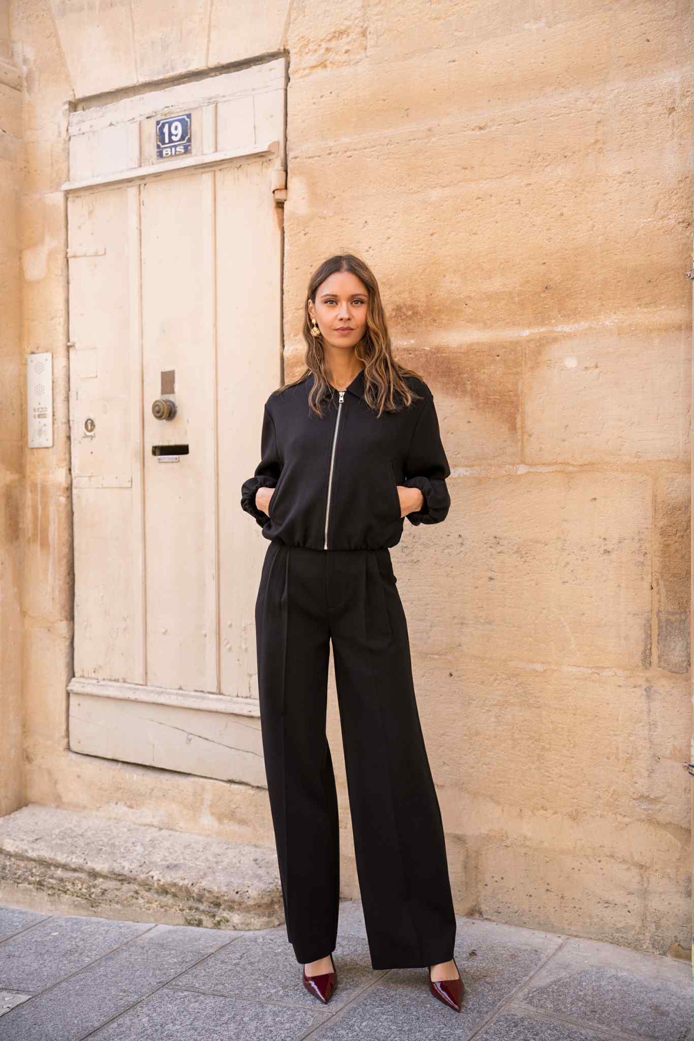 – 77% polyester – 19% rayon – 4% elestane. – Met kraagje. – Bomber jacket model. – Met rits & zakken. – Poef mouwen.