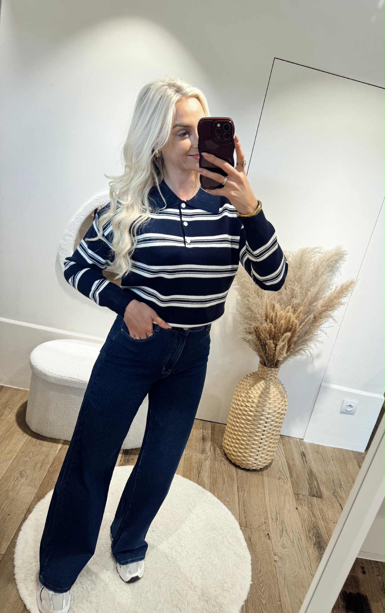– Heel zacht stofje. – Rekbaar. – Striped. – Met knoopjes.